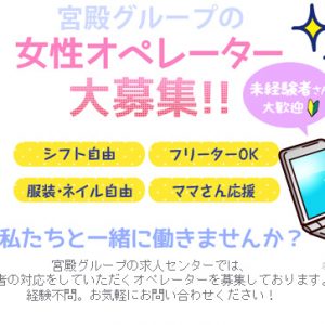 常に当グループは女性キャストさんを 募集しておりますが、 募集受付をしているのは キャスト応募だけではございません!! 当グループでは 女性オペレーターも 大募集してます!! パソコンの基本操作ができれば …